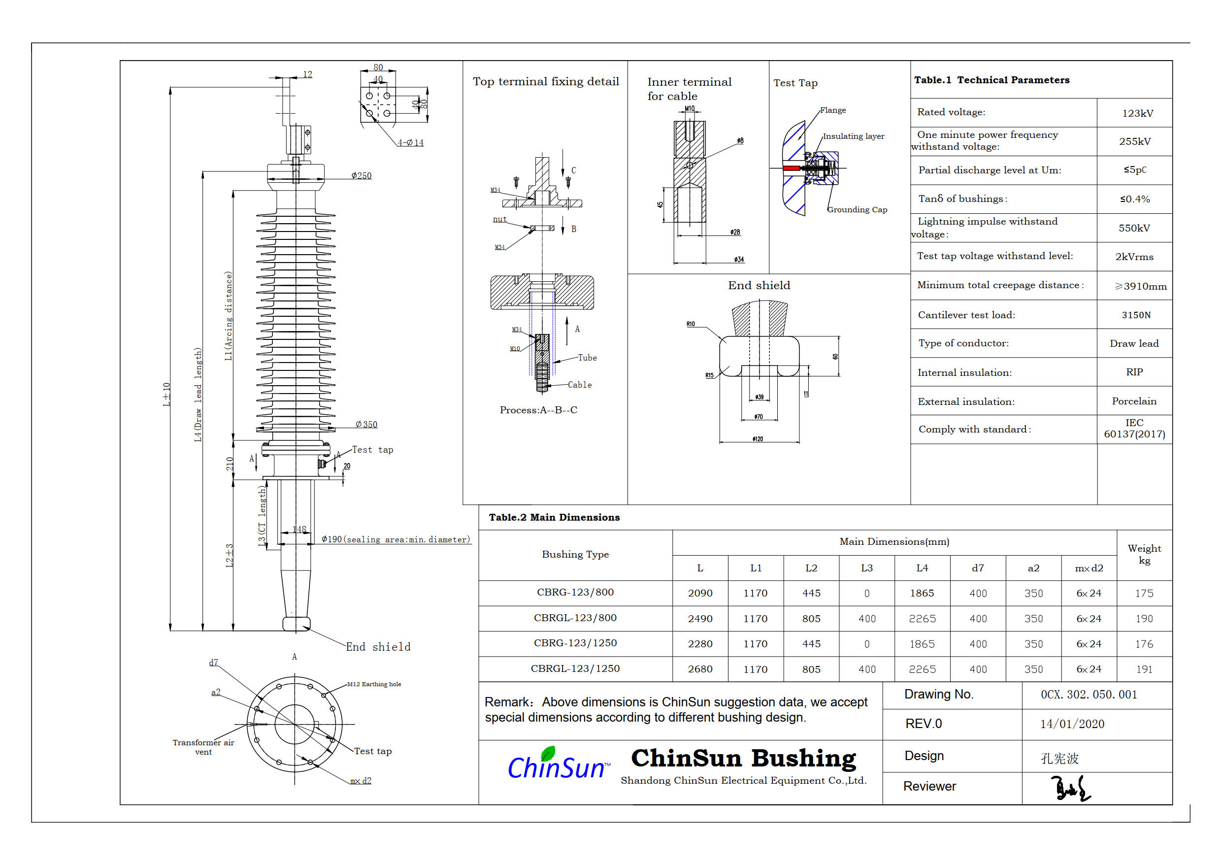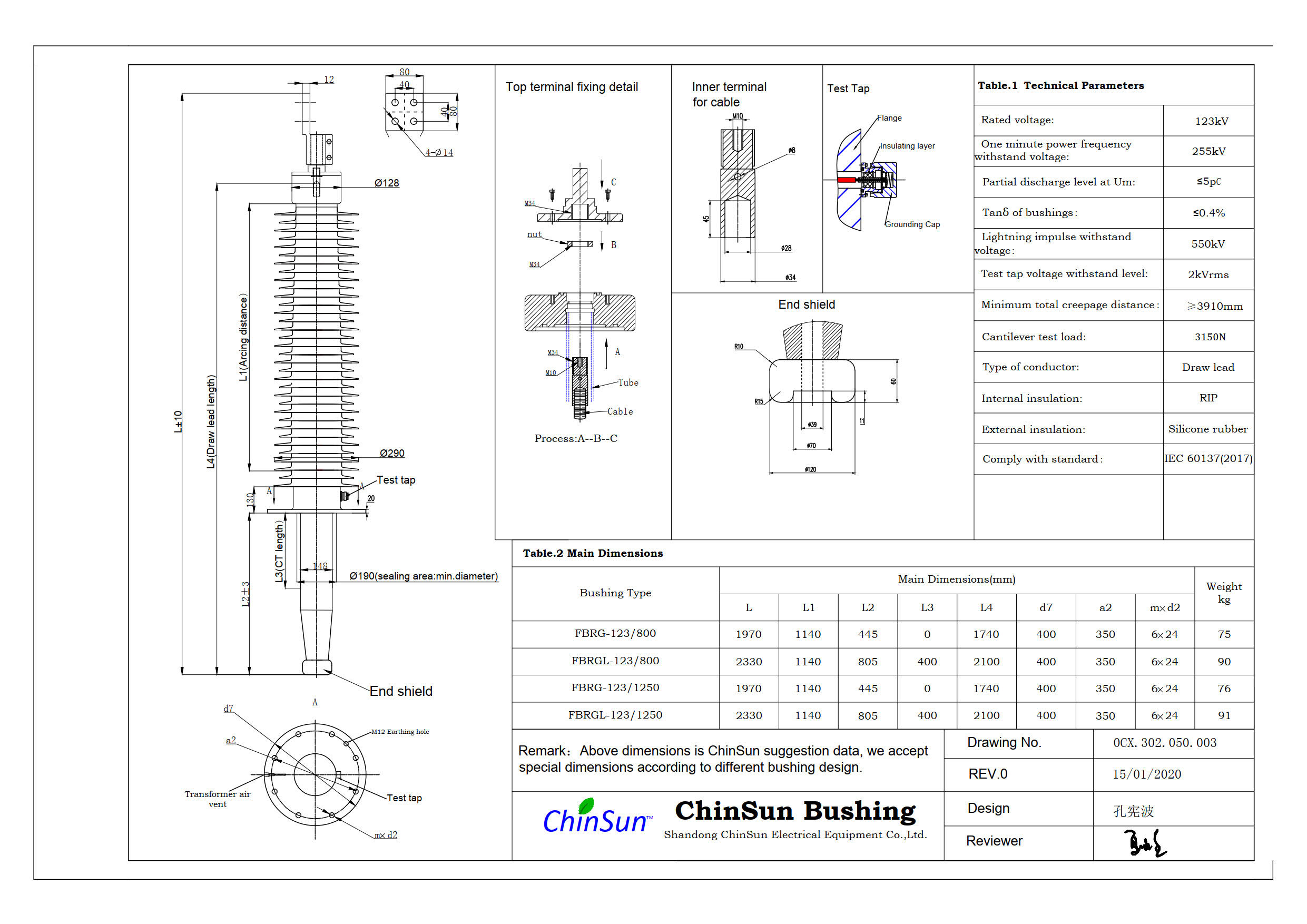 - Drawing-transformer bushing-123kV_Silicone rubber-BC-ChinSun