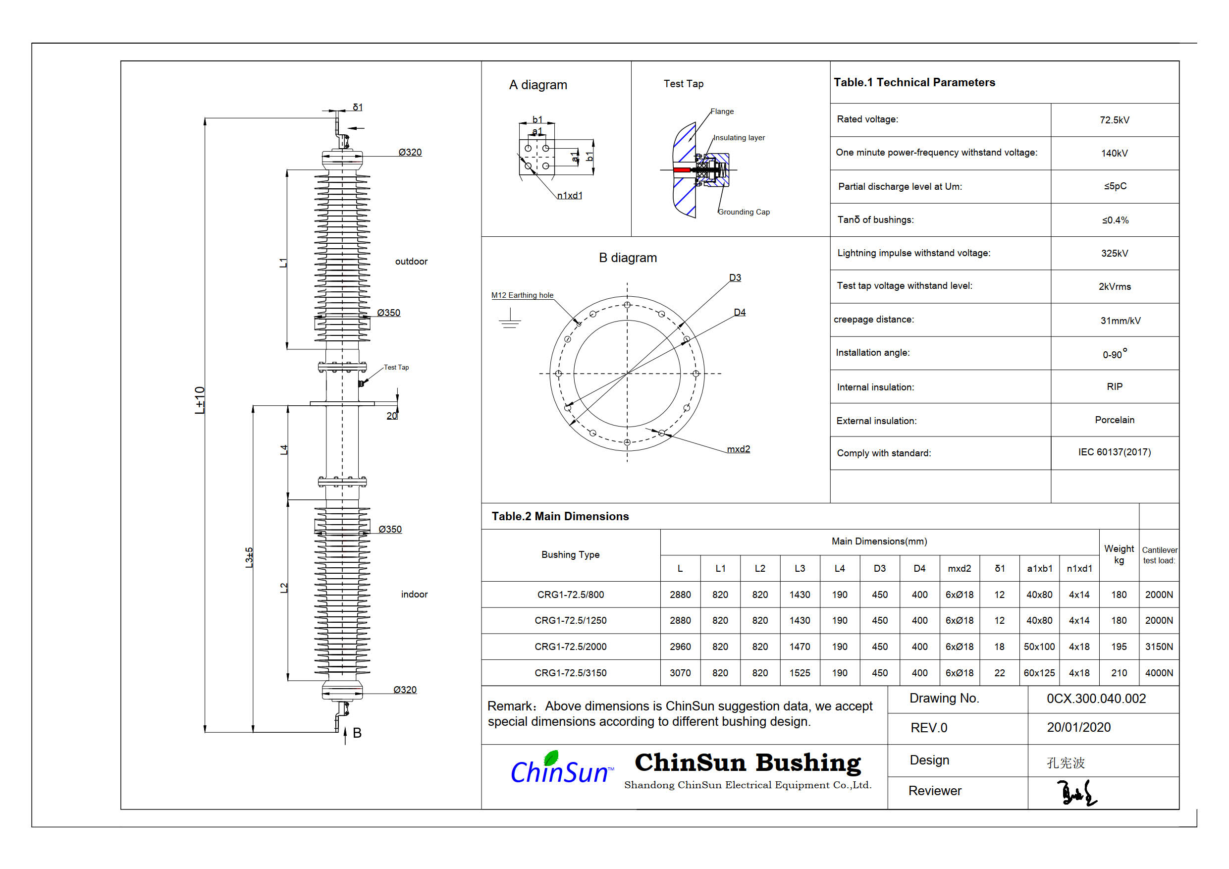- Drawing-wall bushing-72.5kV silicone rubber-ChinSun
